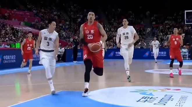 按照正常来说,广东全运男篮拿下胜利没有任何问题,因为他们集齐了省内3支CBA球队培养出来的球员,都是广东省体育局注册的球员,基本上都是CBA球队的首发级别球员,阵容厚度不俗。在首节比赛里,广东全运男篮可以轻松上演“五上五下”的轮换,依靠体能保持场上比赛的快节奏和高强度,拖垮阵容厚度一般的山东全运男篮。作为现役中国男篮队长,赵睿表现得非常沉稳,是球队的核心。广东全运男篮按照正常的战术来打球,但是上半场仅以44比40领先4分,主要问题在于三分球投射手感太差,空位投篮都无法命中。进入第三节,赵睿挺身而出,不仅能够投进三分球,还用犀利的突破拆解山东全运男篮的防守体系。