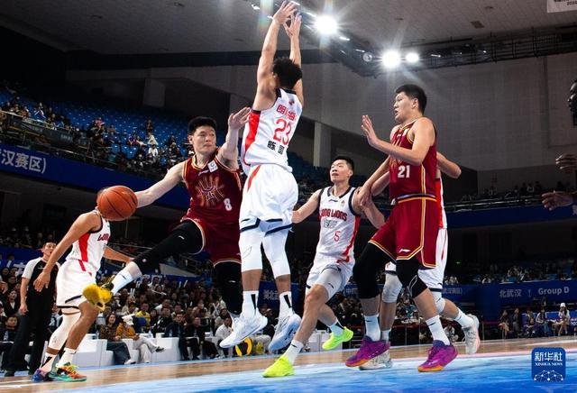 12月7日,山西汾酒队球员黑根斯(右三)在比赛中传球。新华社记者 肖艺九 摄