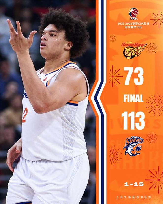 上海外援洛夫顿仅出场16分26秒,14中10带伤高效轰下26+6+5,引领上海113-73狂胜广东创造队史交锋最大赢球分差纪录。