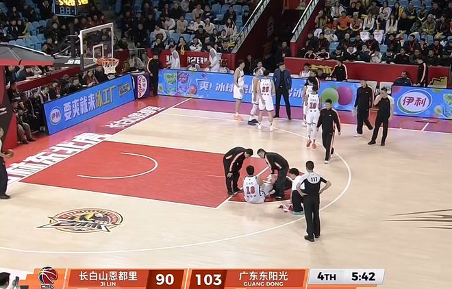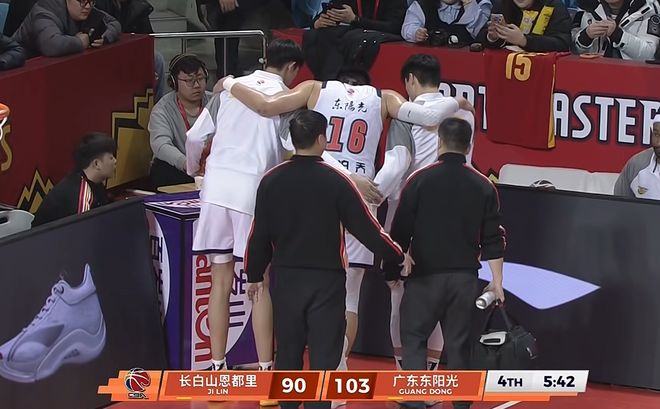 不过,广东队虽然收获了一场大比分胜利,但是,有一件事,却让球迷有一点揪心,没错,那就是在第四节比赛的时候,广东队中锋焦泊乔,出现了意外受伤的情况。在比赛还有5分42秒的时候,焦泊乔在防守移动过程中,被对方绊倒,随后,我们就可以看到焦泊乔捂住自己的脚踝,表情十分痛苦。