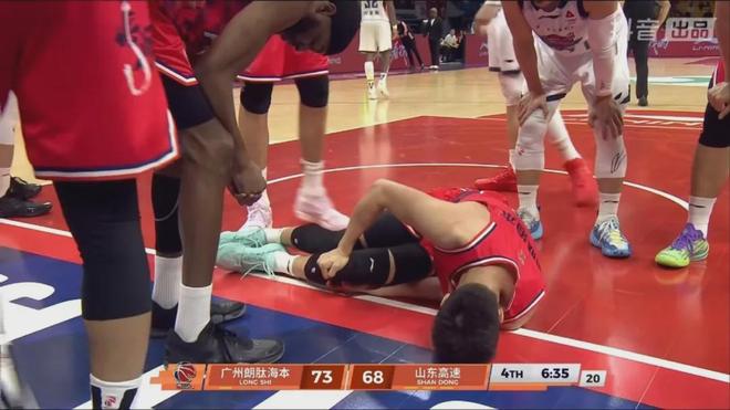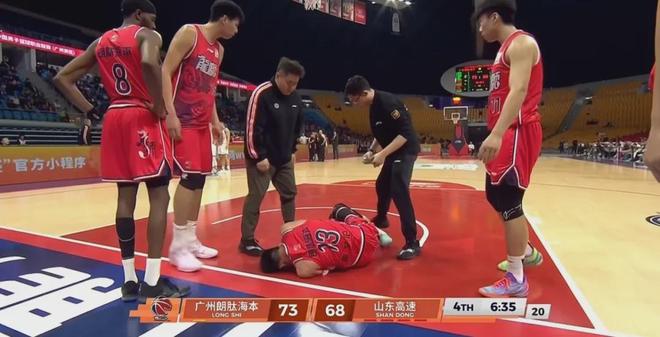 第四节还剩下6分40秒左右时,郭艾伦在一次反击的过程中倒地受伤,随后被担架抬出场地。