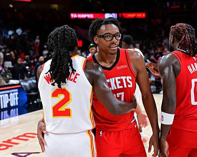 本场比赛中,火箭的先发锋线新援以赛亚-克劳福德(Isaiah Crawford)的表现算得上是令人眼前一亮。克劳福德全场出场31分22秒,投篮14中8,三分线外7中4,得到了20分8篮板3助攻2抢断的数据,其中还包括了3个前场篮板,还有1次失误和5次犯规,正负值更是达到了全场最高的+23。克劳福德在进攻端大杀四方,他展现出了全面的得分能力,他不仅有着不错的篮下得分能力和终结能力,而且他在外线投篮方面的稳定性也是相当出色的。克劳福德在前后场篮板争抢方面也是显得非常积极,而且他在防守端也是非常卖力的,并且也证明了自己是一名可靠的防守者。总体来看,得到了大量出场时间的克劳福德算是在攻防两端都起到了决定性的作用,他的不俗表现也是为球队的这场大胜做出了不小的贡献。