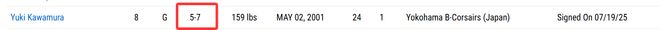 缩水了NBA官方更新河村勇辉身高:从1米73降为1米7