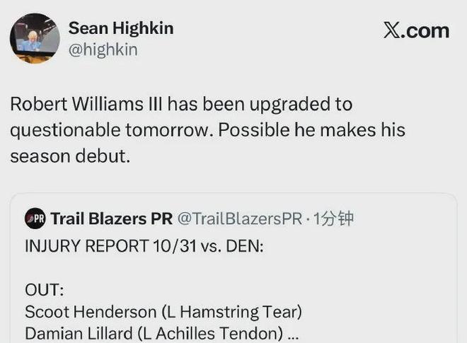 据开拓者方面的消息,罗伯特-威廉姆斯已经伤愈复出,近期回归。如果罗威回归了,对于杨瀚森来说是一个坏消息,杨瀚森的出场时间会更少!罗威是2018年NBA选秀大会首轮第17顺位,身高2米06,司职大前锋或者中锋。罗威曾经是凯尔特人的首发中锋,虽然身高只有2米06,但身体素质劲爆,篮板、防守出色,21-22赛季在凯尔特人队场均可以得到10分9.6篮板2助攻,防守端可以送出2.2次盖帽,还入选了赛季最佳防守二阵!凯尔特人队给罗威提供了一份4年5400万美元的大合同,但罗威的身体状态不是很好,饱受伤病的困扰,2023年休赛期被交易到开拓者队。上个赛季,罗威在开拓者队打了20场比赛,又受伤了。