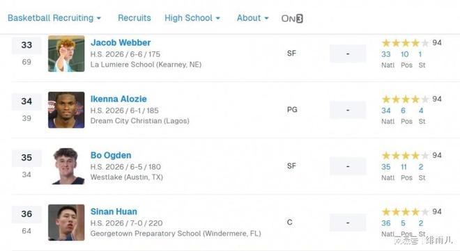 在激烈的身体对抗和更快的比赛节奏下,杨瀚森作为策应核心的打法效率未能稳定兑现,进攻端投射不稳定、防守端移动速度的短板在NBA级别的攻防转换中被放大。近期,随着开拓者队内线罗伯特-威廉姆斯的伤愈复出、杜普-里斯的异军突起以及主力中锋多诺万-克林根的稳定输出,杨瀚森在队内的轮换竞争中已明显处于下风,跌出主要轮换阵容已成为不争的事实。杨瀚森赖以成名的策应和组织能力,在NBA需要极高球权和使用率来支撑,这对于一名新秀来说基本没有什么机会,成长周期也必然漫长。反观郇斯楠,其发展路径则呈现出更加切合NBA联赛的前景。Rivals的高排名并非空穴来风,而是基于其在美国高中联赛中展现出的卓越身体天赋和明确的功能性。郇斯楠的定位非常清晰——一名现代化的蓝领中锋。这一定位,恰恰是当前NBA快节奏、强调空间和防守轮转的版本内线答案中,极具价值的五号位球员。郇斯楠不需要像杨瀚森那样大量持球在手,承担复杂的进攻发起任务,而是专注于防守、护框、篮板以及高效的内线终结。