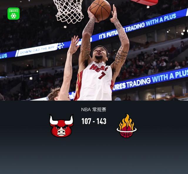 北京时间11月22日,NBA常规赛季中NBA杯小组赛芝加哥公牛主场迎战迈阿密热火。本场公牛科比怀特缺阵,首节双方紧咬比分热火领先4分,但次节热火轰出34-20拉开分差,半场热火70-52公牛,下半场公牛进攻依旧低迷,早早收兵换下主力,热火持续拉大分差,最终热火143-107狂胜公牛。芝加哥公牛多森姆23分4助,约什-吉迪19分10板7助;迈阿密热火诺曼-鲍威尔19分2板2助,阿德巴约18分7板5助。赛况第一节,开场上来双方便展开快节奏对攻,公牛节中一度领先至7分,但来到替补轮换阶段公牛命中率下滑,热火哈克斯、史密斯领衔迅速反超比分,随后双方再度展开对攻拉锯,首节结束,热火36-32公牛。第二节,开节段公牛再度进攻断电,热火将分差拉大至两位数,公牛短暂止血之后再度哑火,热火鲍威尔、韦尔领衔多点开花轰出一波22-4领先来到25分,节末段公牛武切维奇、基迪站出来缩小分差,半场战罢,热火70-52公牛。第三节,公牛进攻回暖,但热火依旧保持回应维持20分上下领先,节末段公牛再度进攻断电,热火抓住机会进步拉大分差,三节结束,热火102-75公牛。第四节,公牛基迪领衔替补继续在账,热火也主力在场持续拉大分差接连40分,直至后半节热火换下主力,公牛基迪仍在场带队但无济于事,全场结束,热火143-107公牛。技术统计芝加哥公牛多森姆23分4助2帽,约什-吉迪19分10板7助,杰伦-史密斯12分2板2助5帽;迈阿密热火诺曼-鲍威尔19分2板2助2断1帽,阿德巴约18分7板5助3帽,凯尔-韦尔18分14板1助2断1帽。首发阵容芝加哥公牛:多森姆,约什-吉迪,奥科罗,武切维奇,布泽利斯;迈阿密热火:诺曼-鲍威尔,阿德巴约,凯尔-韦尔,达维昂-米切尔,拉尔森。