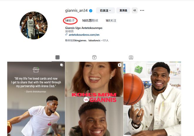 NBA名记Haynes透露了他与字母哥的一段对话,这位两届常规赛MVP表示,当自己面前出现阻碍时,他希望“冲破阻碍,解决问题”。至于社交媒体内容的清理,Haynes指出,字母哥早在“三四周前”就删除了大量内容,其中除了雄鹿相关帖子外,还包括不少亲友照片。字母哥提到了迈克尔-B-乔丹(美国男演员)今年早些时候的一段采访,乔丹在采访中引用了丹泽尔-华盛顿给过他的关于职业生涯与个人形象管理的建议。乔丹转述华盛顿的话称:“如果大家一整周都能免费看到你,那他们凭什么还要花钱在周末来看你?”据Haynes报道,字母哥表示自己正是从这个角度重新考量后,决定清空社交媒体上的大部分内容。目前字母哥的IG账号仅剩下14条帖子,其中前四条均为广告或商业合作内容。不过他仍保留了雄鹿2021年NBA总决赛夺冠以及上赛季赢得NBA杯的相关照片。