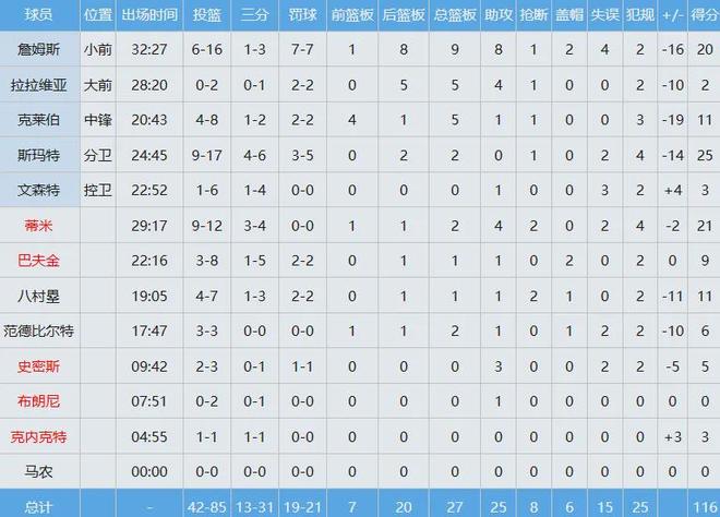 东契奇里夫斯艾顿全部休战,斯玛特中途伤退,超级残阵的湖人客场面对开拓者毫无还手之力,最终116-132大比分落败。