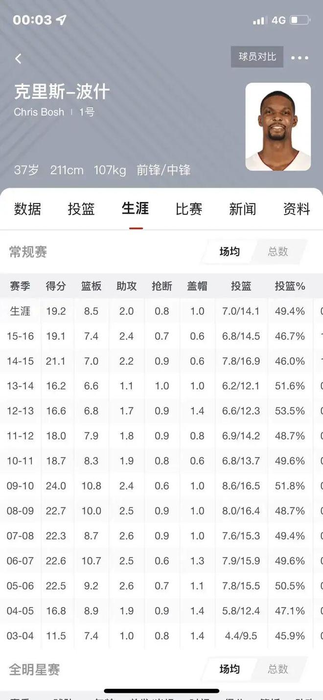 大家在看看龙王波什的数据。两人数据相差不大,不懂的人甚至会认为麦克詹姆斯是什么神仙人物。