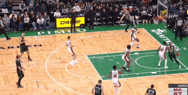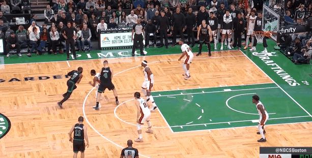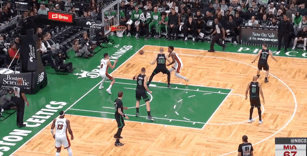 第三节49比66时——上半场凯尔特人三分20中1,于是大比分落后——武切维奇替下凯塔,凯尔特人一口气追到73比72。