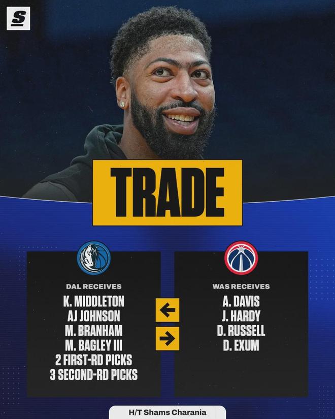 ——独行侠得到米德尔顿、AJ约翰逊、布兰纳姆、巴格利、2个首轮签、3个次轮