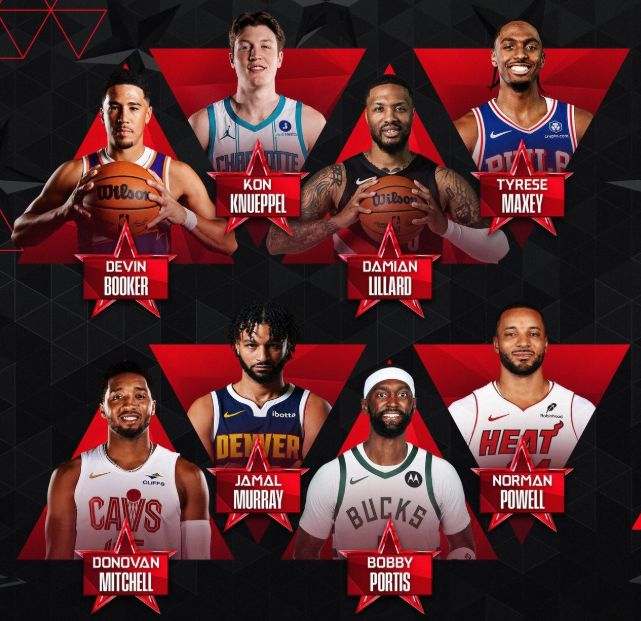 三分大赛部分,此前追求三连冠失败的利拉德提前复出,再加上布克、米切尔、马克西、波蒂斯、鲍威尔、穆雷。而最被关注的,应该就是史上最快单赛季破100记三分的克努佩尔了,看看他能否再次突破三分新纪录。