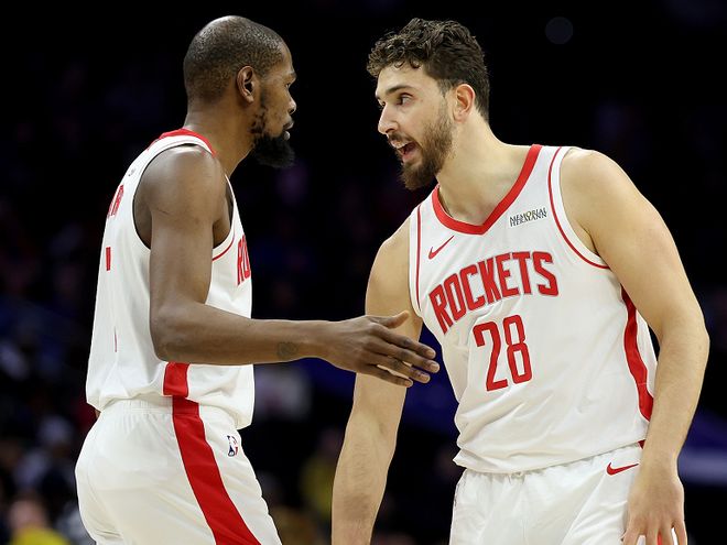 将时光拨回到去年休赛期,火箭队与太阳队完成了一笔8换1史诗级大交易,火箭队送出杰伦格林+狄龙+2025年10号签+5个次轮签(2025年59号签+2026年两个次轮签+来自凯尔特人的2030年次轮签+2032年次轮签),得到太阳队的杜兰特。从某种意义上讲,火箭队与杜兰特算是真正的双向奔赴!一方面,太阳队阵容薄弱内忧外患,不足以支撑杜兰特的冠军梦;另一方面,火箭队阵容厚实前途无量,需要杜兰特这样兼具实力与经验的关键先生。
