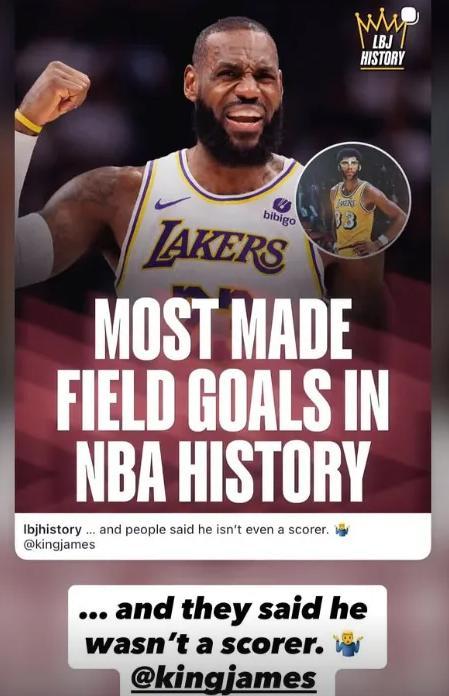 显然,詹姆斯在用历史记录打那些看不起他的人的脸,毕竟现在他是投篮历史第一人,数据说明一切。