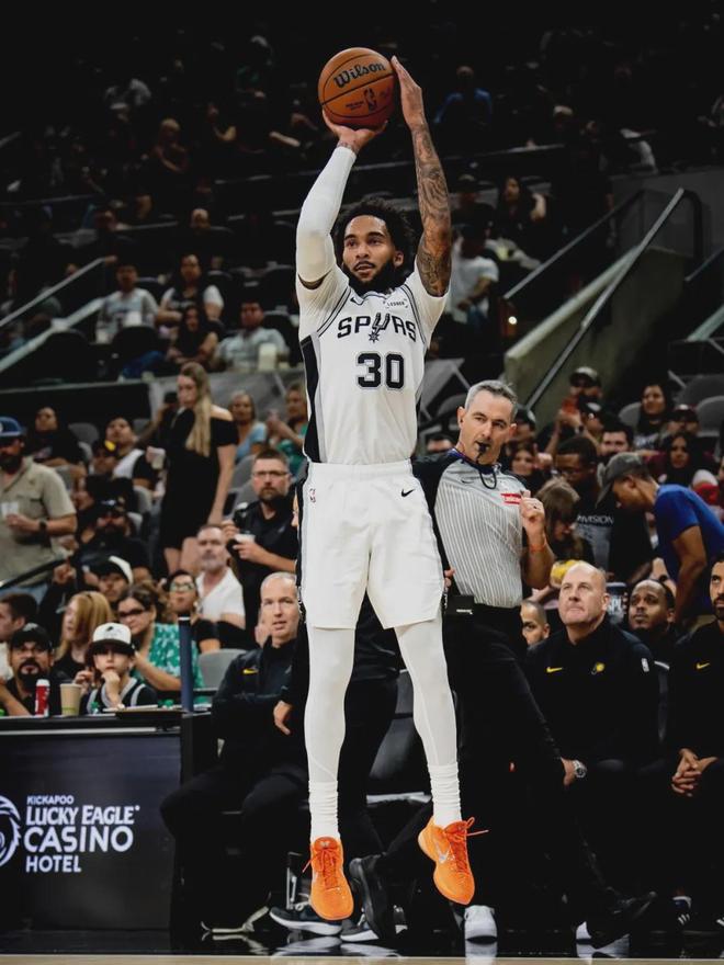 马刺上一场25分逆转快船,尚帕尼10投6中砍下20分9篮板,两项数据都是全队第二,仅次于文班亚马。第三节尚帕尼8中6,单节怒砍20分吹响反扑的号角。本赛季尚帕尼投进157记三分,三分命中率38.9%,这两项都是马刺队内第一。