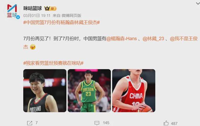 理论上讲,这三人都有可能于今夏7月份代表中国男篮出战对阵日本男篮和中国台北队的世预赛第三窗口期。