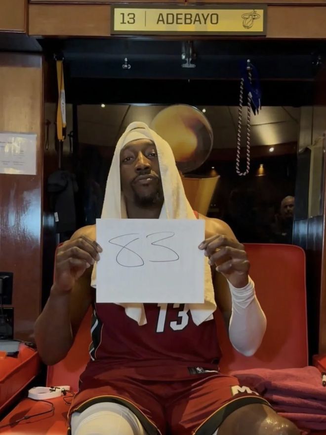“感谢我的教练,我将把这一刻视为职业生涯最佳,这格外特别,因为这是在我的主场。”赛后,阿德巴约感谢了教练,也将致敬献给了名宿科比,“对我来说,我一直在想科比会说什么,我得到83分超过他,我就会想,‘他会对我说什么?’因为我一直都想和他聊聊天。他可能会说,‘再来一次’。能和自己从小崇拜的人在一起,真是太不可思议了。”