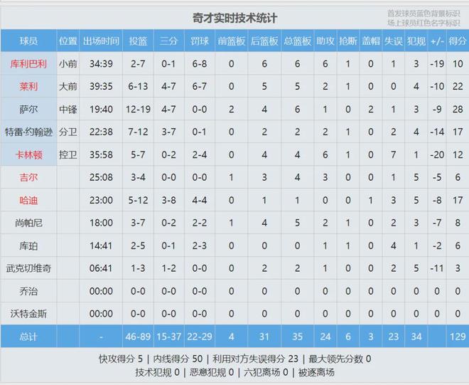 最后来看看本场比赛的数据,说说你的感受: