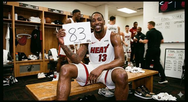 迈阿密热火队球星巴姆·阿德巴约今天出门前肯定是背着我们偷吃了什么灵丹妙药——这哥们儿今晚居然狂砍了83分!