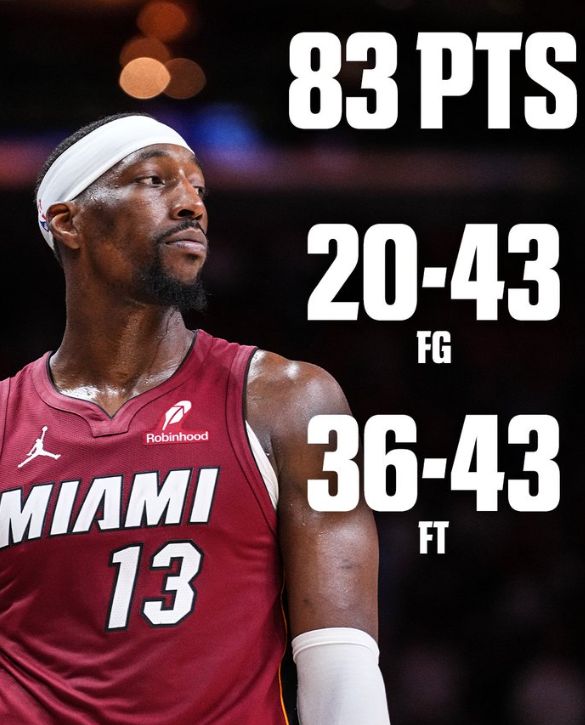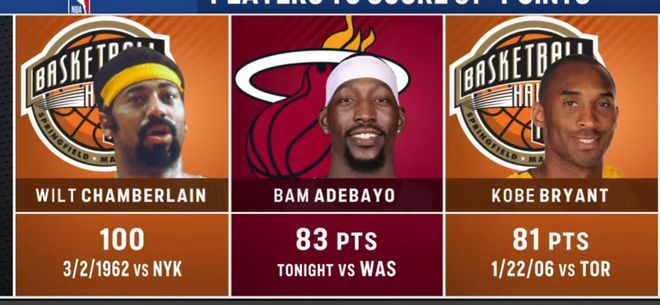 而热火也是见招拆招,开球后马上给阿德巴约只让你犯规我持球人,再次持球造犯规上线,最终两罚全中将个人得分停留在83分,成为张伯伦后历史第二人。