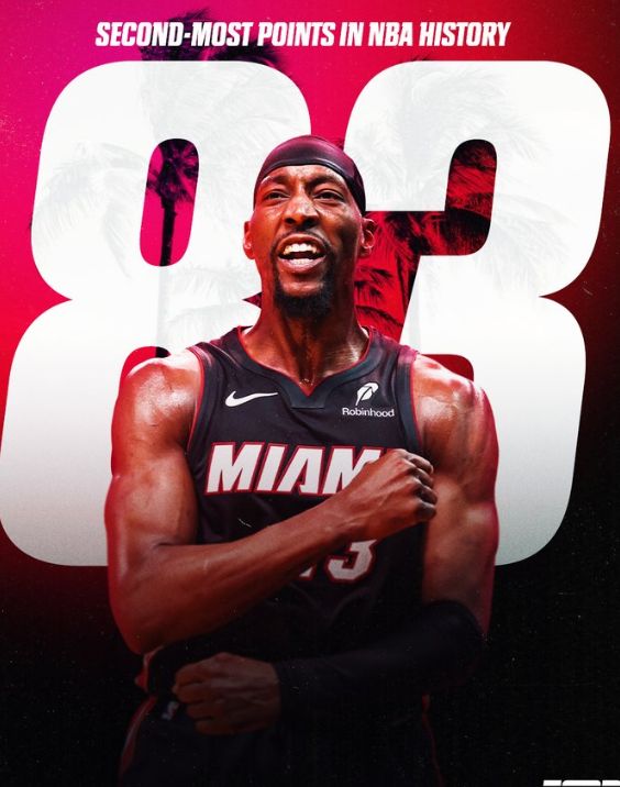 到了第二节阿德巴约继续拿到13分将半场得分刷到43分,距离唐斯半场44分只有1分只差并且大幅度刷新热火队史半场得分记录,此前仅仅是道格拉斯的31分。