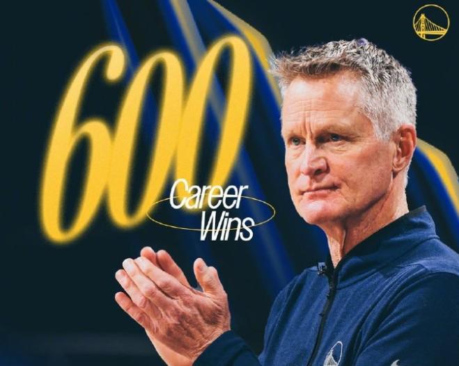 本场过后,勇士主帅科尔拿到生涯执教第600胜(全部在勇士),位列NBA历史第28位。