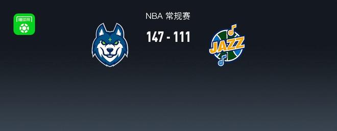 第四节森林狼杰伦-克拉克拿下9分,爵士森萨博拿下11分,最终森林狼147-111战胜爵士