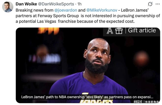 近日,NBA官方宣布了其在拉斯维加斯和西雅图增设两支新球队的扩军计划。今日,NBA资深记者Dan Wokie发表了一篇深度报道,标题为《合作伙伴退出扩军竞标,詹姆斯获取NBA球队所有权之路受阻》。报道内容如下: