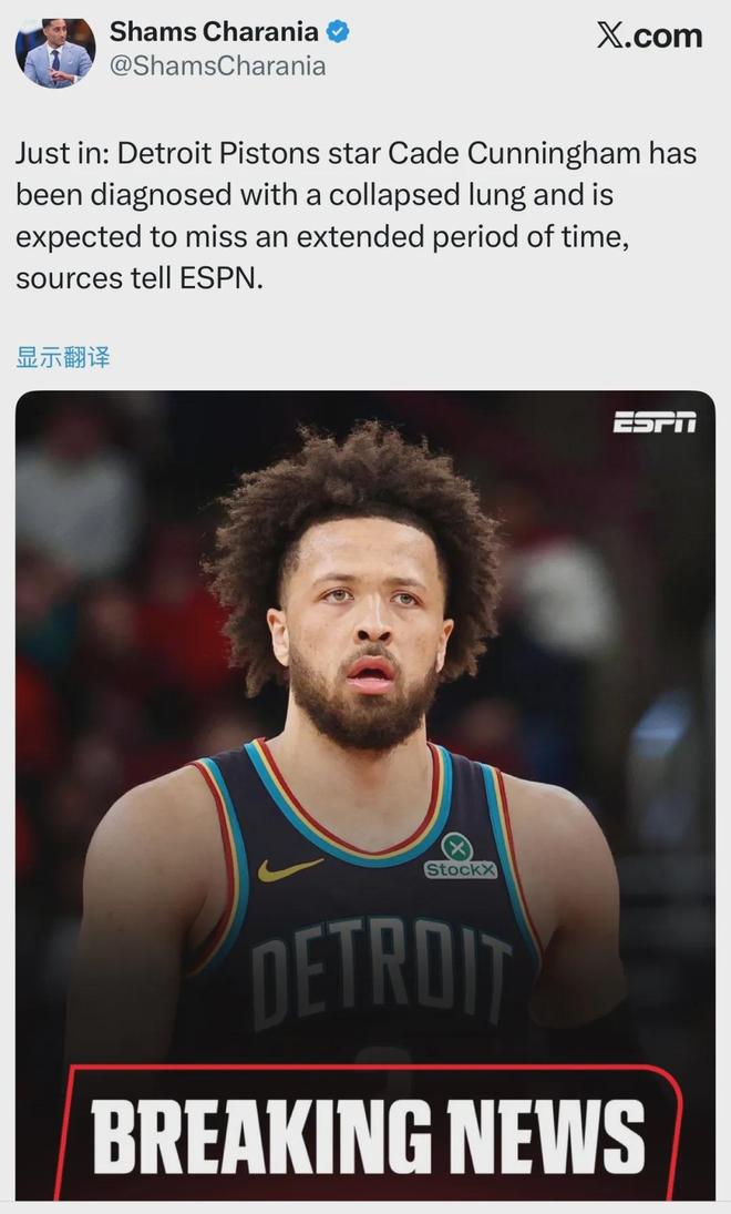 不过必须要承认,因为坎宁安意外倒下,活塞可能就此退出了争冠行列,除非前者能在季后赛开打前及时满血归来。