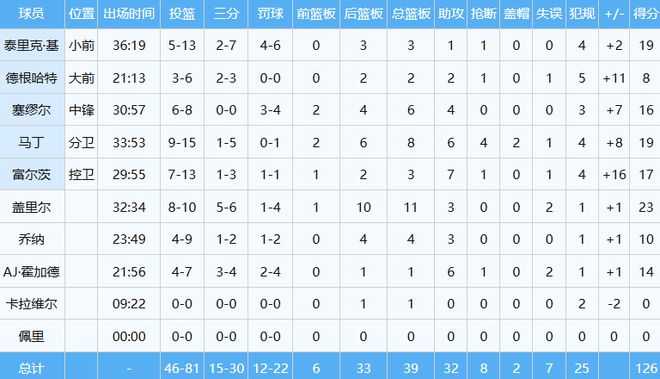 此役富尔茨投篮13中7,其中三分3中1砍下17分3板7助1断,正负值+16。