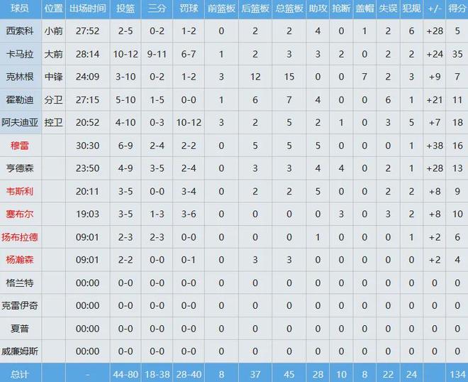 卡马拉绝对是本场的最佳球员,投篮12中10,其中三分11中9(命中率约82%)砍下35分外加3板3助,得分和三分命中数均是个人生涯新高。