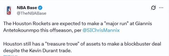 火箭一向愿意进行重磅运作,上赛季休赛期就曾从太阳交易得到杜兰特。球队还手握多个未来选秀权,如果字母哥进入交易市场,火箭有足够筹码开出有竞争力的报价。